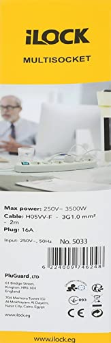 iLOCK - مشترك كهرباء من بلوجارد ب3 منافذ مع مفتاح - 3500 وات - 16 امبير - 250 فولت
