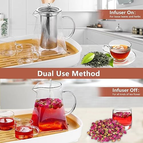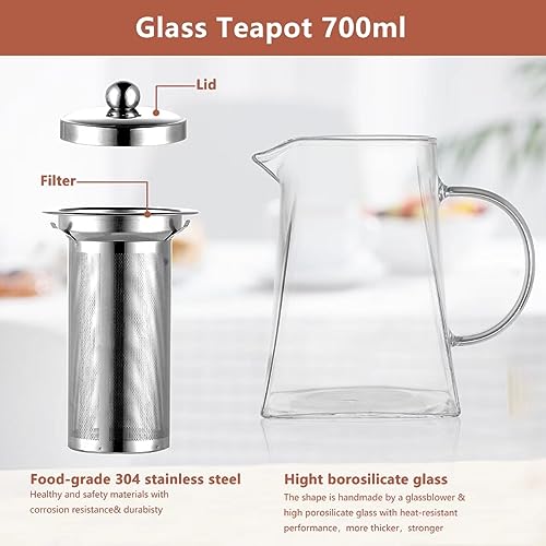 - 🍃براد شاي زجاجي للاستخدام العائلي: براد شاي زجاجي فائق الشفافية بسعة 700 مل مع مصفاة من الستانلس ستيل، مما يساعدك على جمع الشاي العائم للسماح لك بتحضير الشاي بسهولة. براد شاي للشاي السائب أو الشاي المزهر، مناسب لتحضير كمية تكفي لشخصين أو 3 أشخاص.
