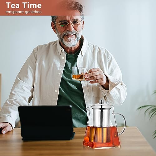 - 🍃براد شاي بتصميم أنيق مربع الشكل: براد الشاي المربع مصنوع يدويًا بالكامل، وهو مصنوع من زجاج شفاف مقاوم للحرارة. حتى تتمكن من مشاهدة عملية نقع الشاي. يتميز بتصميم مربع الشكل يوفر مظهرًا أنيقًا وسلسًا. تصميمه العصري يجعله مثاليًا للتقديم كهدية رائعة لأفراد العائلة أو الأصدقاء، ويمكن استخدامه في أي مناسبة.