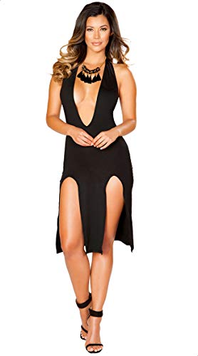 Generic - فستان للنساء بطول الركبة بفتحة رقبة أمامية، من جيني