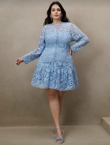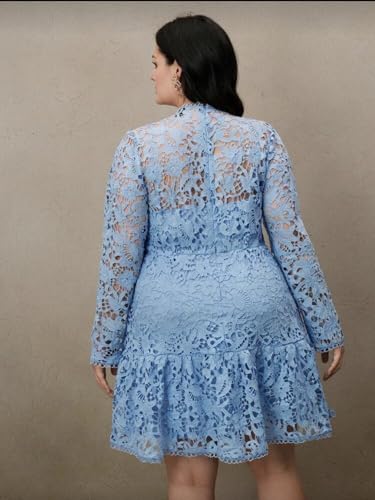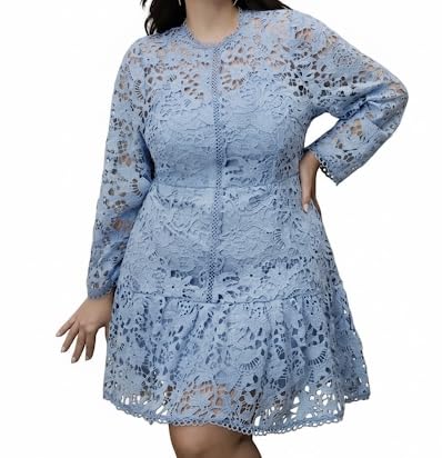 Generic - فستان دانتيل ازرق باكمام طويلة ومقاس كبير، فستان ربيعي بوهو بنمط القصر الاوروبي، مقاس XXL