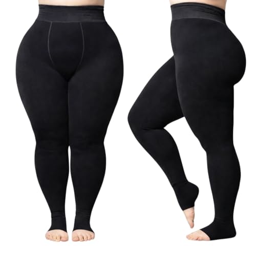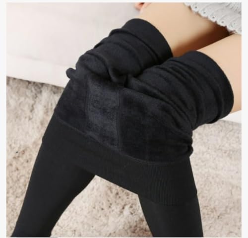 Generic - سروال ضيق حراري مبطن بالصوف بمقاس كبير، لون اسود، بناطيل ضيقة عالية الخصر للتدفئة في الشتاء
