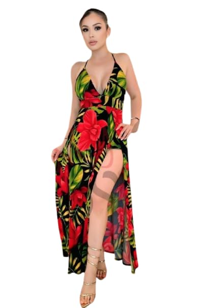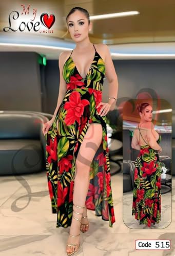Generic - فستان نوم بنقشة مثيرة للمقاسات الكبيرة – تصميم غير متماثل برباط خلفي