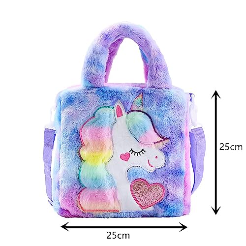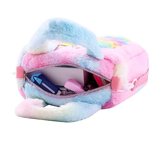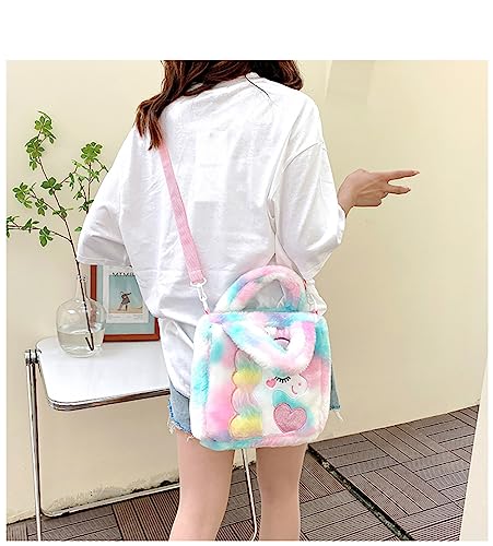 KISSUN - شنطة ظهر قطيفة للبنات الصغيرات مخملية منفوشة صغيرة لطيفة على شكل حيوانات كرتونية كاواي يد كتف للسفر مدرسية بالوان قوس قزح