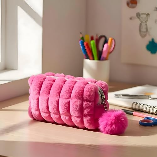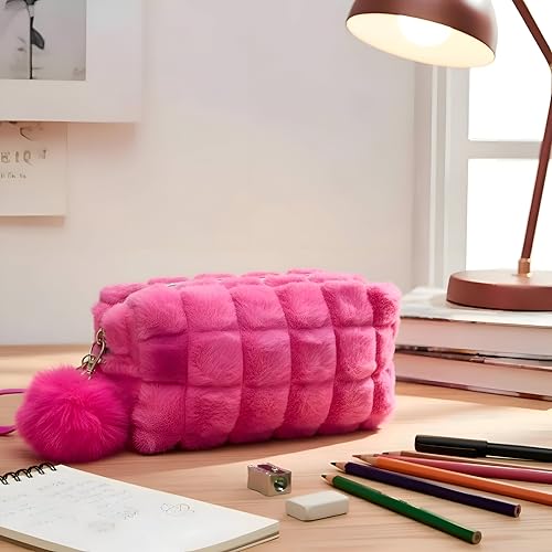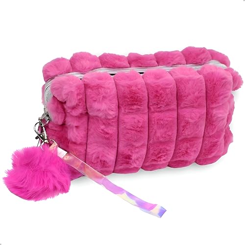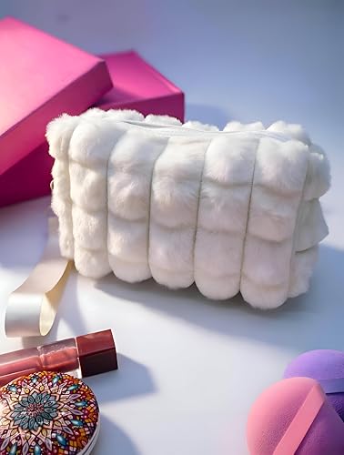 Generic - شنطة مستحضرات تجميل قطيفة - تصميم مخطط بسعة كبيرة مع زخرفة بوم بوم وسحاب آمن، مثالية للسفر وتنظيم المنزل. (الخيار 1)
