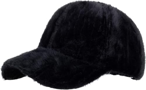 Generic - قبعة بيسبول مخملية من الفرو الصناعي، لون اسود، قبعة عصرية دافئة للشتاء