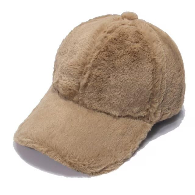 Generic - قبعة بيسبول مخملية من الفرو الصناعي، لون بني كاكي، قبعة شتوية ناعمة