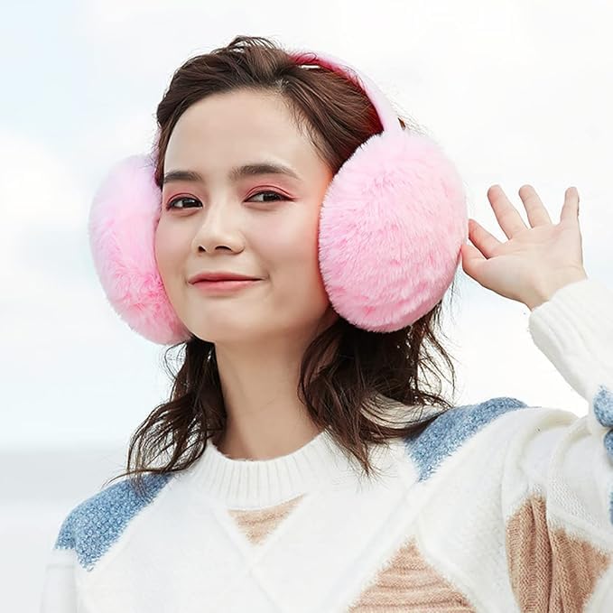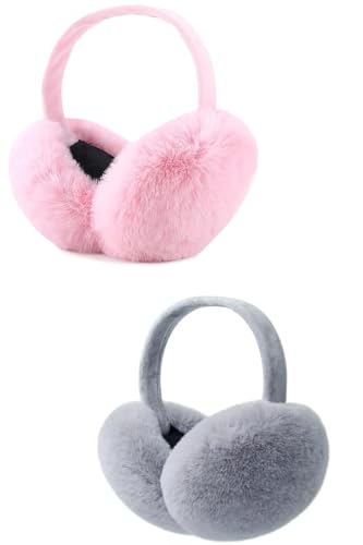 Generic - اغطية اذن مخملية من الفرو الصناعي، لتدفئة الاذن في الشتاء، بينك ورمادي، عبوة من قطعتين