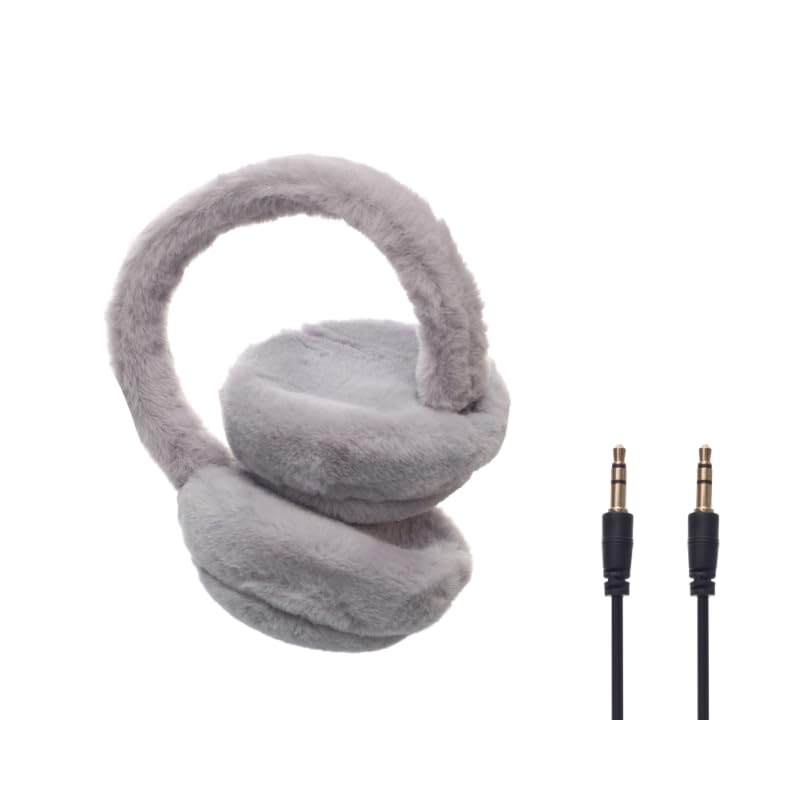 Generic - سماعة رأس قطيفة بتصميم مريح مغطاة بالفرو الصناعي مع كابل 3.5 ملم إلى 3.5 ملم مناسبة للبنات، لون رمادي