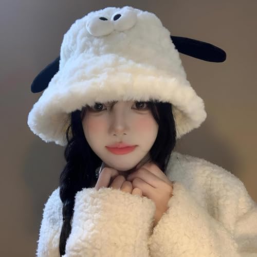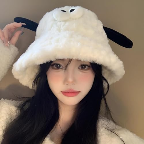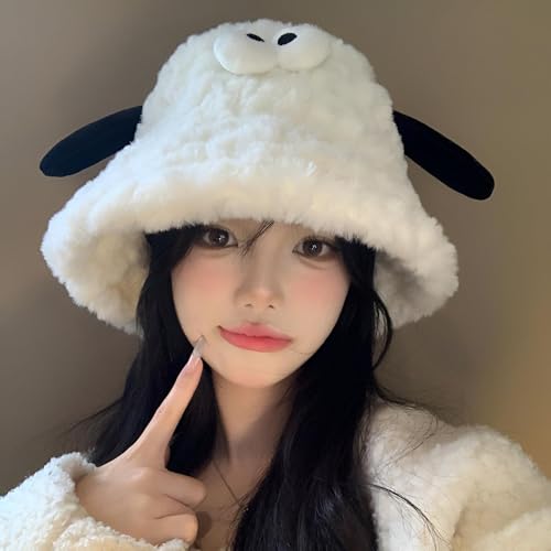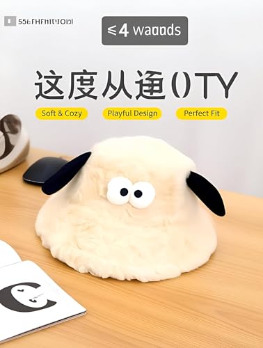 Generic - قبعة قطيفة على شكل خروف - قبعة تيدي من الفرو الناعم مع اذنين للدفء في الشتاء ومظهر انيق لنمط حيوان لطيف