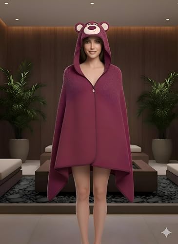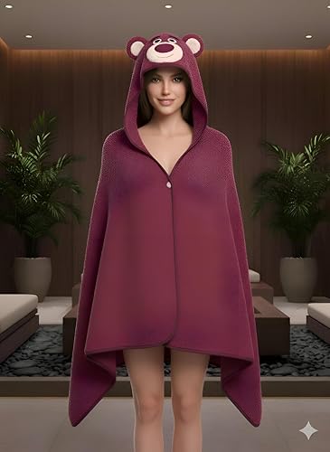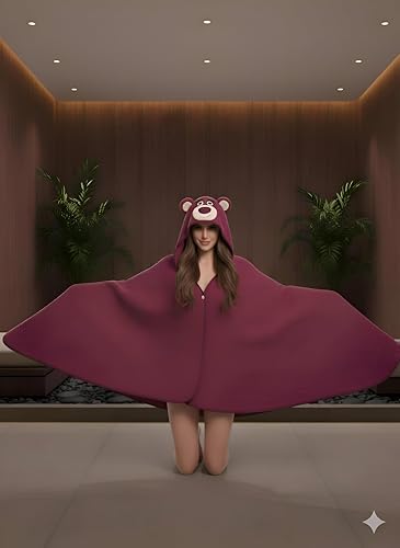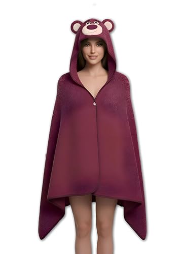 Generic - بطانية مخملية قابلة للارتداء - معطف صوف ازرق فاتح مخملي للغاية مع اذني دب لطيفة، جزء داخلي من المايكروفايبر الناعم، مقاس مناسب للبالغين، مثالي لماراثون الافلام المريحة وجلسات الالعاب او الاسترخاء في