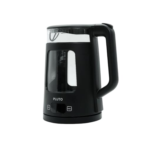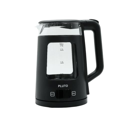 PLUTO - بلوتو غلاية كهربائية زجاجية بطبقة من البولي كربونات، سعة 1.7 لتر، 2200 واط، دوران 360 درجة، اضاءة زرقاء، شاشة رقمية، اسود