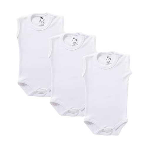 Pluto - سالوبيت بكباسين بدون أكمام من القطن للأطفال البيبي من بلوتو، مجموعة من 3 قطع