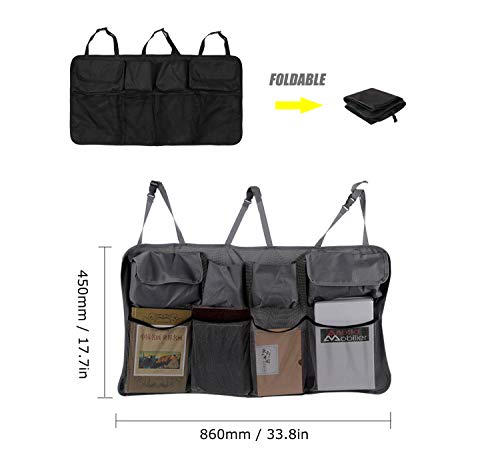 - [أدوات تنظيم السيارة]: 8 مساحات تخزين واسعة لمعدات الطوارئ والأدوات والبقالة والألعاب والوجبات الخفيفة والدواء والكتب والتابلت والخرائط والمجلات وغيرها من الأغراض.