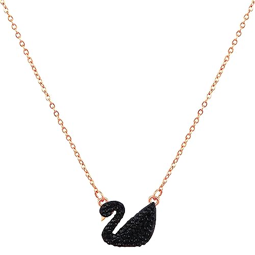 Pmw - سلسلة بجعة مطلية بالذهب الوردي مع سلسلة من الستانلس ستيل من بي ام دبليو، سلسلة بطة سوداء سلسلة ذهبية للنساء والفتيات