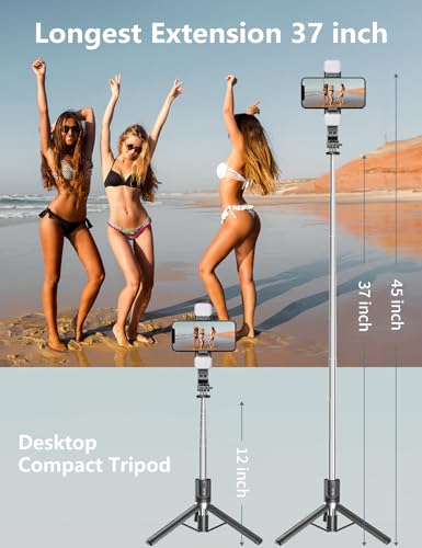 Pnitri - عصا سيلفي ثلاثية القوائم مع مصباحين للملء، حامل ثلاثي القوائم طويل للغاية 45 انش مع جهاز تحكم عن بعد قابل للفصل، متوافق مع ايفون والهاتف الذكي وجوبرو