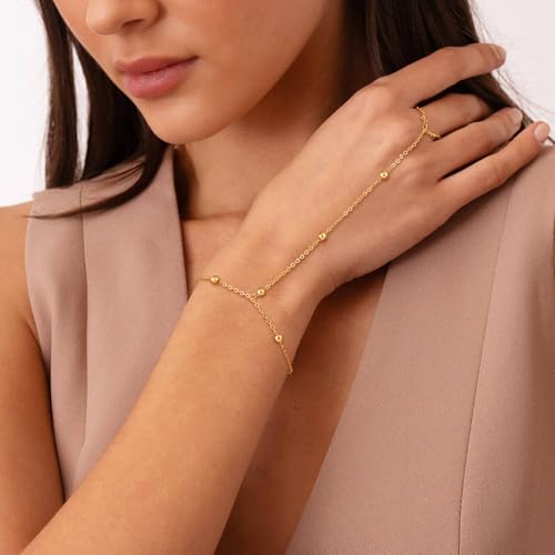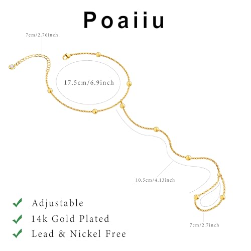 Poaiiu - أساور ذهبية عصرية للنساء، سلسلة يد قابلة للتعديل عيار 14 قيراط، خرز لطيف بطبقات زركونيا مكعب، خاتم للإصبع، هدايا مجوهرات من بوايو