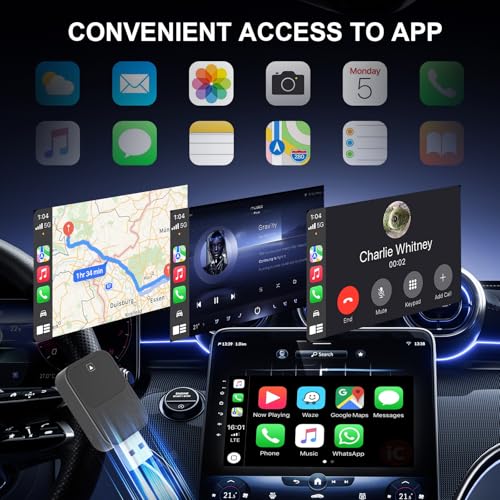 - 🚗 2 في 1 كاربلاي لاسلكي وأندرويد أوتو: تحويل الاتصال السلكي إلى لاسلكي على الفور. استمتع باتصال سلس لكل من آيفون (كاربلاي) وأندرويد (اوتو) دون كابلات متشابكة. يدعم الملاحة والموسيقى والمكالمات والمساعدين الصوتيين.