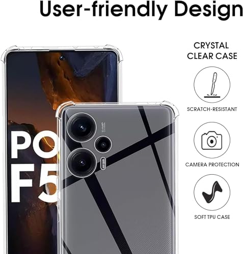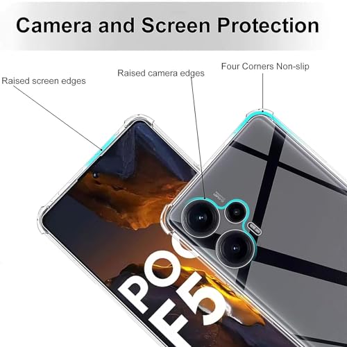 Generic - (Poco f5 5G ) جراب خلفي شفاف ناعم مدرع باربع زوايا لمقاومة الصدمات مصنوع من البولي يوريثين المقاوم للحرارة متوافق مع هاتف شاومي بوكو F5 شبكة الجيل الخامس 5G، سيليكون