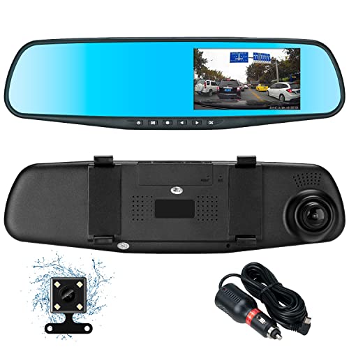 Podazz - مسجل قيادة السيارات فيديو عالي الدقة 1080P من بوداز، بعدسة مزدوجة وكاميرا للتابلوه والرؤية الخلفية للمراة الامامية والخلفية، جهاز دي في ار مع مقياس التسارع وحلقة تسجيل وقوف السيارات وتقنية كشف الحركة