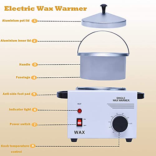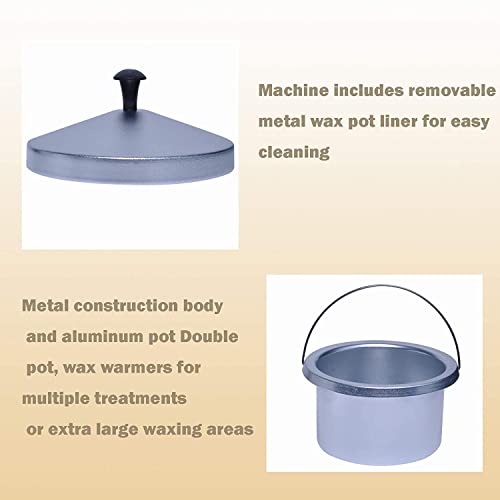- هيكل معدني ووعاء من الألومنيوم، وعاء مزدوج لتسخين الشمع لعلاجات متعددة أو مناطق إزالة الشعر بالشمع الكبيرة جدًا