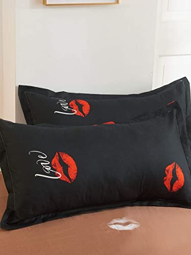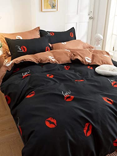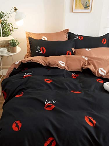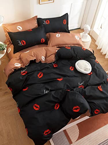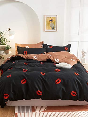 POIUHYJ - طقم سرير بطبعة شفاه بدون حشو (اللون: متعدد، المقاس: 200 × 230)، بوليستر، متعدد الألوان، سادة