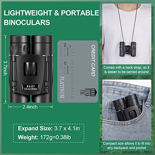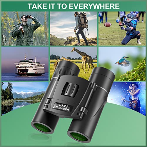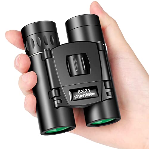 POLDR - مناظير جيب صغيرة بقوة تكبير 8X وعدسة 21 ملم من بولدر، مناظير صغيرة برؤية واضحة للبالغين، مناظير محمولة خفيفة الوزن سهلة التركيز لمشاهدة الطيور والمسرح والأوبرا والسفر