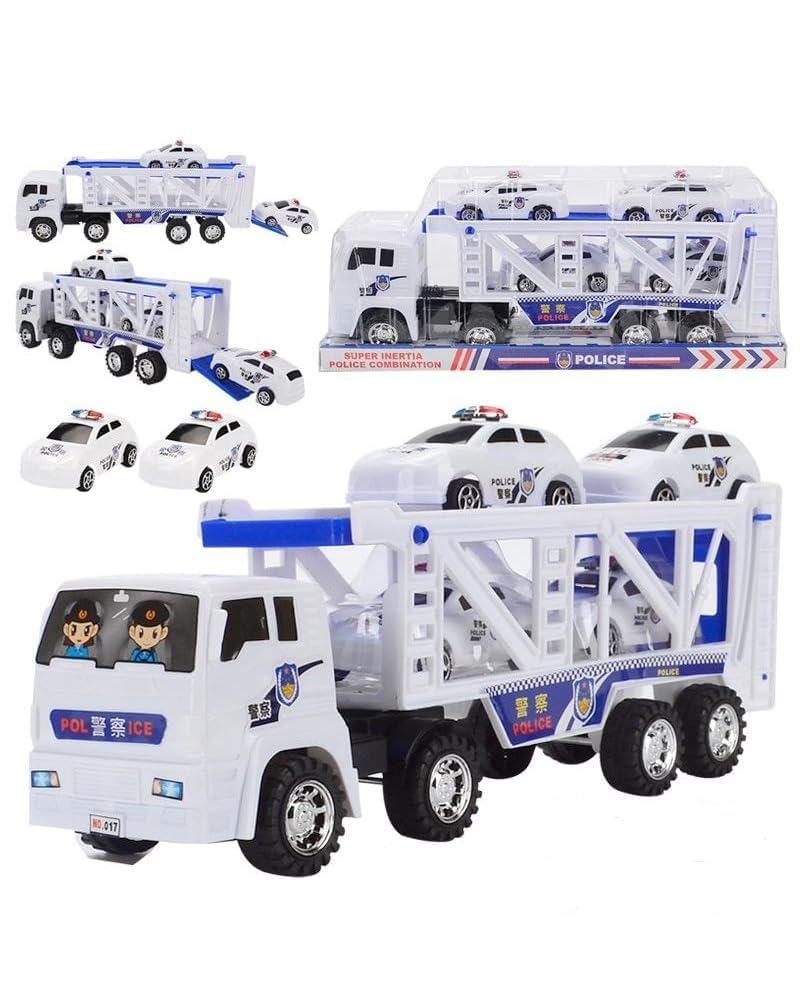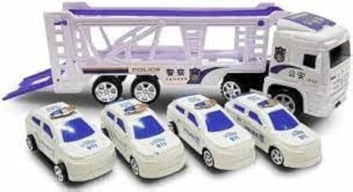 Generic - لعبة شاحنة بوليس حاملة ل 5 سيارات شرطة تنمية خيال الطفل بمشاركة جميع أفراد الأسرة و إندماج مع الاسرة مما يشعر بالأمان تساعد على المواهب التخلص من التوتر الذكاء أبيض