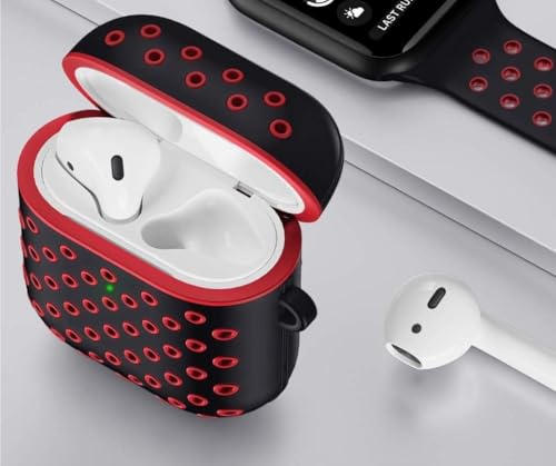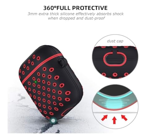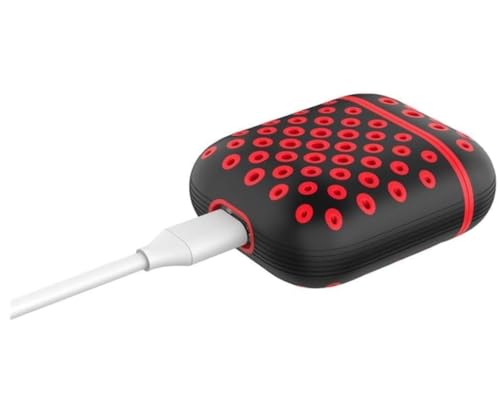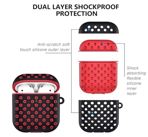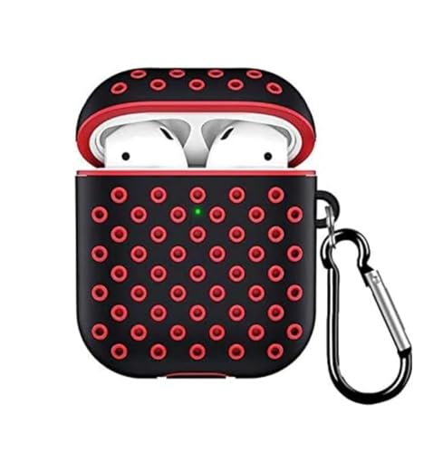 Generic - غطاء حافظة منقط من السيليكون الناعم ذو طبقة مزدوجة مع خطاف مضاد للفقدانات لهواتف (LED أمامية مرئية) (احمر ×اسود)، لسماعات ايربودز