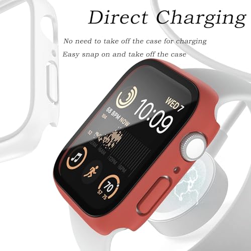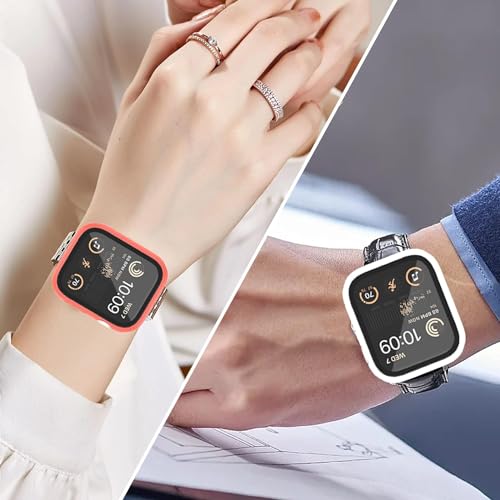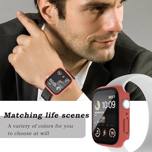 Generic - جراب حماية للشاشة الصلبة بتغطية كاملة من البولي كربونات يحتوي على طبقة من الزجاج المقوى وتصميم حواف سوداء مناسب للساعات الذكية 40 ملم - لون أحمر