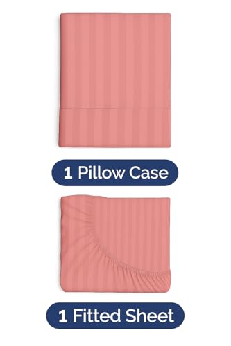 - مجموعة كاملة: يتضمن طقم ملاءة السرير الفاخر ملاءة واحدة مسطحة بعمق 30 سم وكيسين مخدة متطابقين مقاس 50 سم × 70 سم بنقشة مخططة أنيقة.