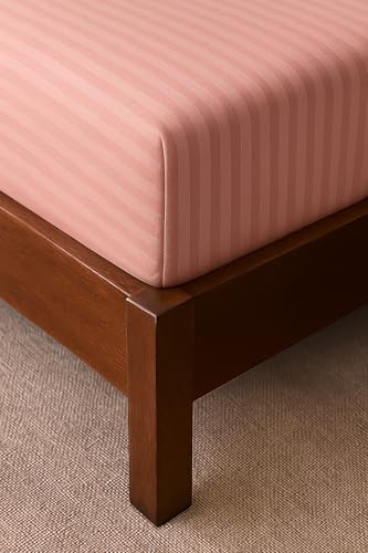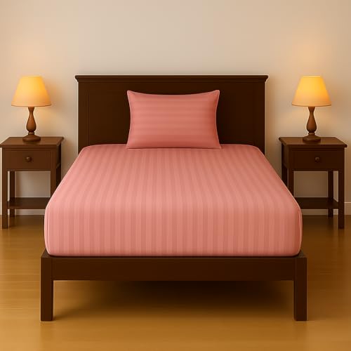 Generic - طقم ملاءة سرير من القطن والبوليستر مع كيسين مخدة بنقشة مخططة، قابل للتنظيف في الغسالة، وردي، 1.2 م × 2 م