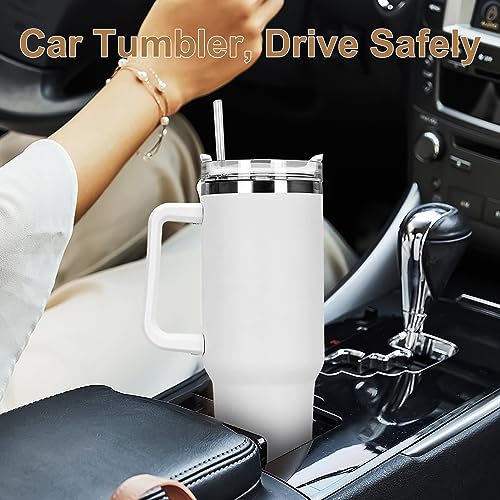 LYJANUN - كوب 40 اونصة مع مقبض وغطاء بماصة من بوليز، زجاجة مياه معزولة من الستانلس ستيل للسفر، كوب قهوة مثلجة للسيارة للمشروبات الساخنة والباردة (بيج)