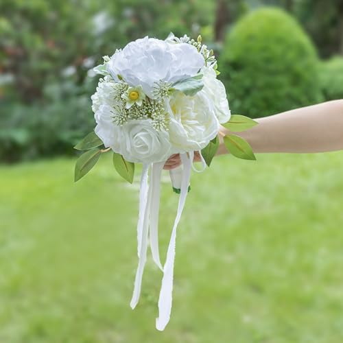 ponatia - باقات زهور زفاف بيضاء اللون للعروس وصديقتها المقربة، باقات زهور صناعية لحفلات الزفاف واحتفالات الذكرى السنوية، لون أبيض وعاجي