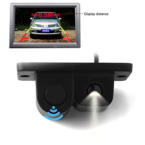 PONPY - كاميرا رؤية خلفية 2 في 1 عالية الدقة HD بزاوية رؤية واسعة 170 درجة مضادة للماء مع مستشعر رادار مدمج لركن السيارة