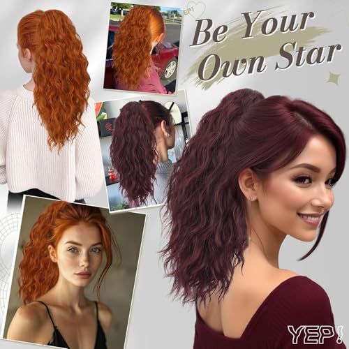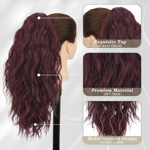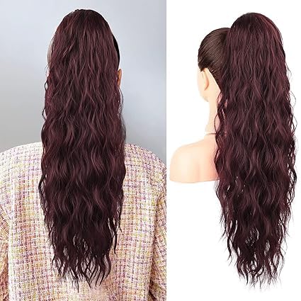 Generic - وصلة شعر بتسريحة كيرلي متموجة بطول 55 إلى 60 سم بمشبك طويل مفرود بطول 53.34 سم، وصلة شعر صناعية بمظهر طبيعي للنساء، 150 جرام، أسود وأحمر داكن (ريد وين)، JW-250- NO-99