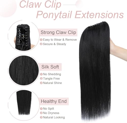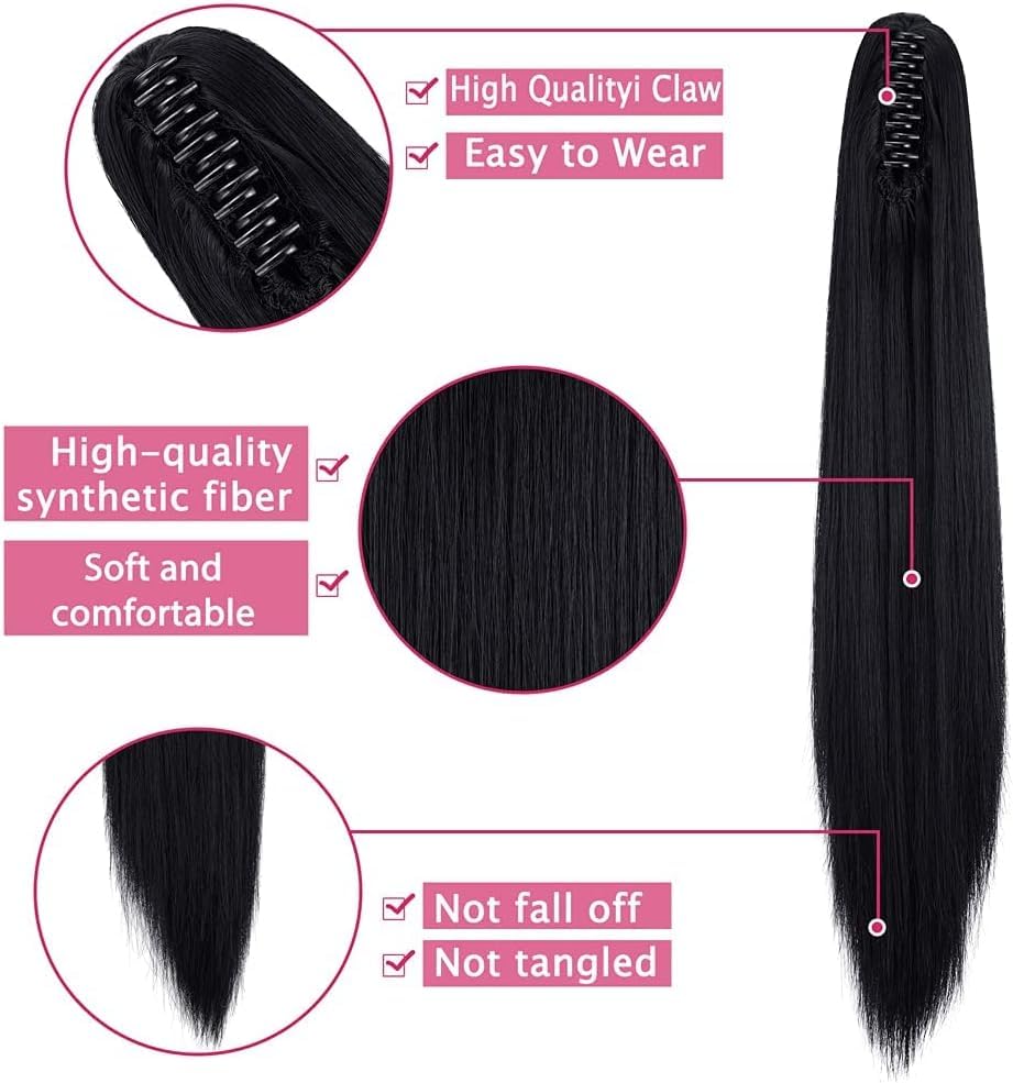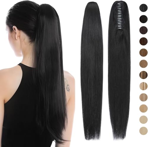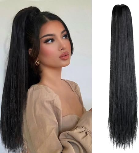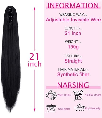 Generic - وصلة شعر بتسريحة ذيل الحصان بطول 55 إلى 60 سم بمشبك طويل مفرود بطول 53.34 سم - وصلة شعر صناعية بمظهر طبيعي للنساء بوزن 150 جرام، JW-251- رقم 02، أسود