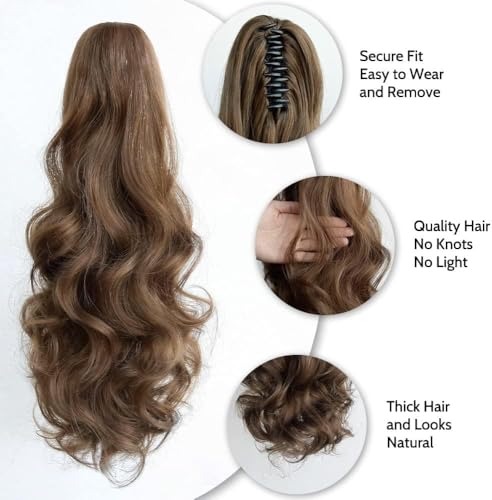 Generic - وصلات شعر بتسريحة ذيل حصان مقاس 62 سم إلى 67 سم، وصلة شعر مجعد ومموج ومنفوش بمشبك مخلبي للهالوين والاستخدام اليومي، الوزن 155 جرام، لون بني نحاسي، jw295-12A