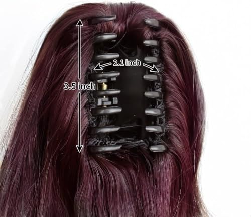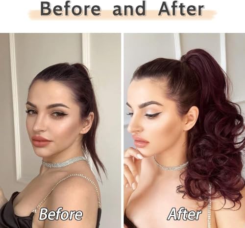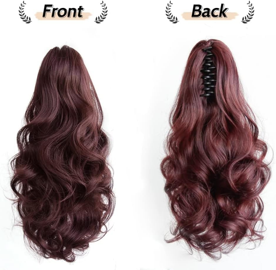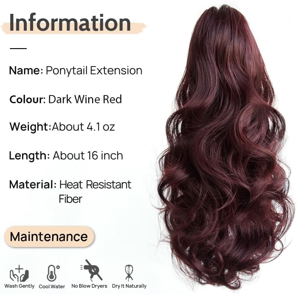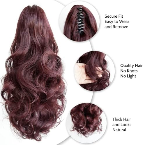 Generic - وصلات شعر بتسريحة ذيل حصان، 62 سم إلى 67 سم - وصلة شعر مجعد بمشبك مخلبي، شعر مستعار صناعي مموج ومنفوش للهالوين، للاستخدام اليومي بوزن 155 جرامًا -jw295-99- أحمر داكن نبيذي