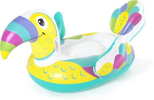 - تصميم نابض بالحياة: عوامة مسبح بتصميم طائر مستوحاة من ألوان قوس قزح الزاهية، وتتميز بأنماط مبهجة من الأصفر والتركواز والأرجواني والوردي، مع تفاصيل رسوم متحركة رائعة.