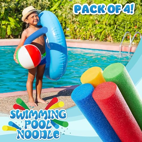 Generic - مجموعة عوامات حمامات السباحة بنمط النودلز قوية ومرنة للسباحة – 4 قطع