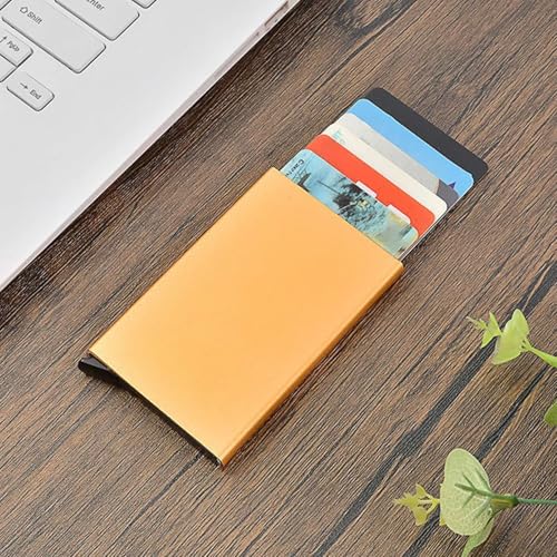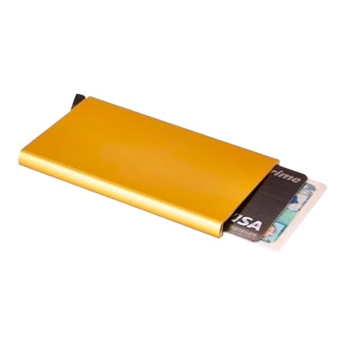 Generic - حامل بطاقات ذكي مضاد للسرقة بتصميم منبثق وتقنية حجب تحديد الهوية بموجات الراديو بتصميم رفيع من الألومنيوم مع جيب خلفي مرن، حامل بطاقات الهوية والائتمان، حامل بطاقات الهوية مناسب للسفر، (أصفر ذهبي)