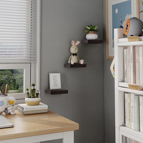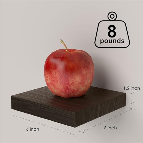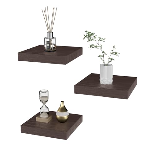 PopiShelves - ارفف عائمة صغيرة للحائط من بوبي شيلفز - ارفف مربعة صغيرة 6 انش بلون بني ريفي لغرفة النوم وغرفة المعيشة والحمام والمطبخ وديكور المكتب، مجموعة من 3 قطع