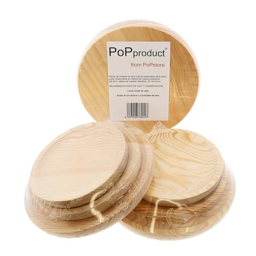 PoPproduct - مجموعة من 3 اطباق بقطر 22 و18 و16 سم من بوب برودكت - اطباق اخطبوط من خشب الصنوبر الطبيعي مصنوعة يدويًا في غاليسيا
