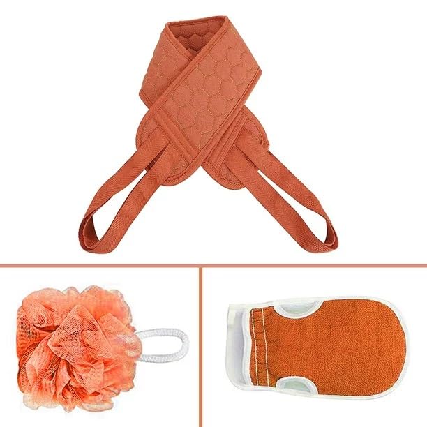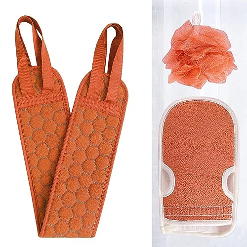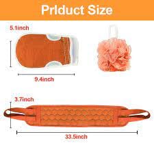 popular - فرشاة لتقشير الظهر لتنظيف عميق وقفازات لتقشير الجسم وليفة استحمام إسفنجية للنساء من بوبولار، مجموعة من 3 قطع