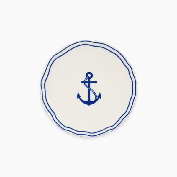 - التصميم: طبق بورسلين جميل يتميز بزخارف مرساة كلاسيكية باللون الأزرق الداكن مع حواف مزدوجة الخط لنمط بحري لا يتأثر بمرور الزمن