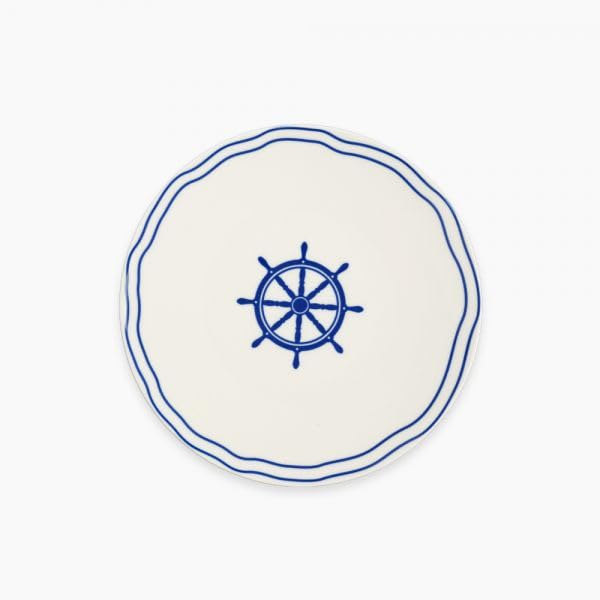 - تصميم بحري: تتميز بتصميم عجلة سفينة زرقاء أنيقة في المنتصف مع تفاصيل حافة زرقاء مزخرفة