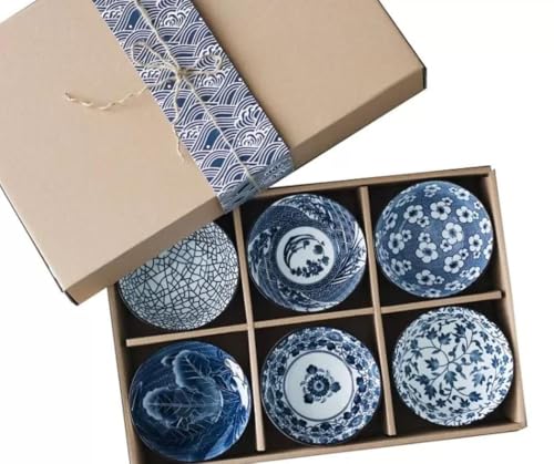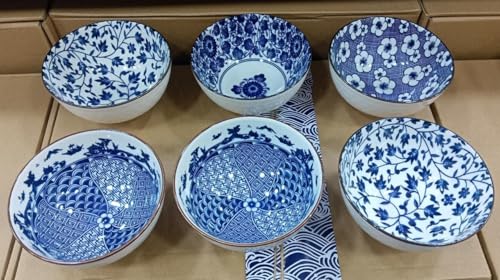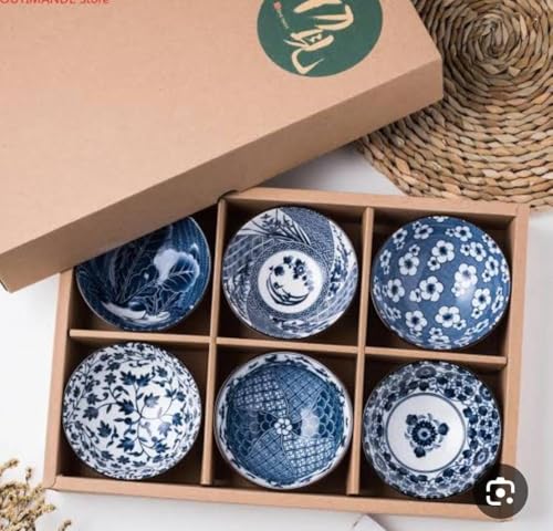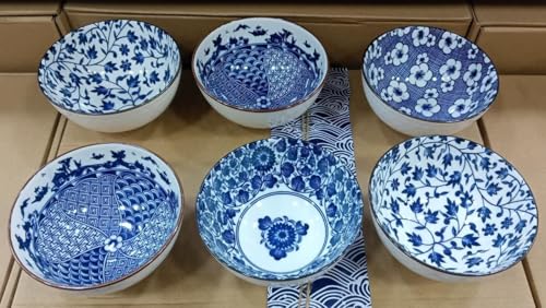 - مجموعة متكاملة: طقم من ٦ أوعية بورسلين فاخرة بتصميم ياباني تقليدي أنيق باللونين الأزرق والأبيض