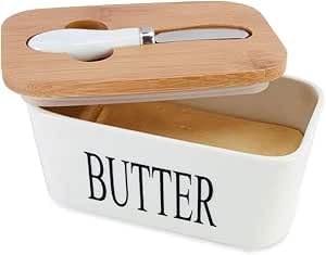 - مزايا مريحة: يتضمن سكين زبدة مطابق وسدادة سيليكون للحفاظ على النضارة ومنع الروائح غير المرغوب فيها