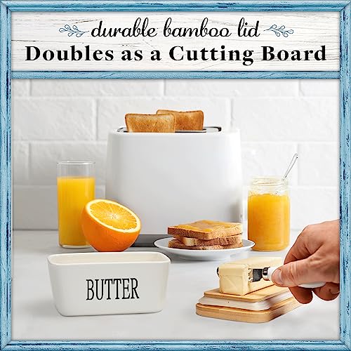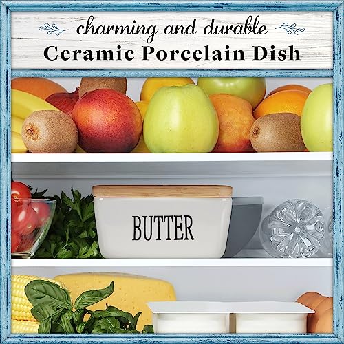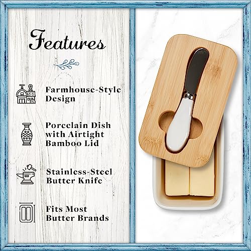 Home Acre Designs - طبق زبدة بورسلين بغطاء وسكينة للتخزين، ديكور بيت ريفي
